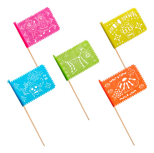MINI BANDERAS DE PAPEL CHINA TEMA DIA DE MUERTOS, PAQUETE DE 12 PZS MULTICOLOR