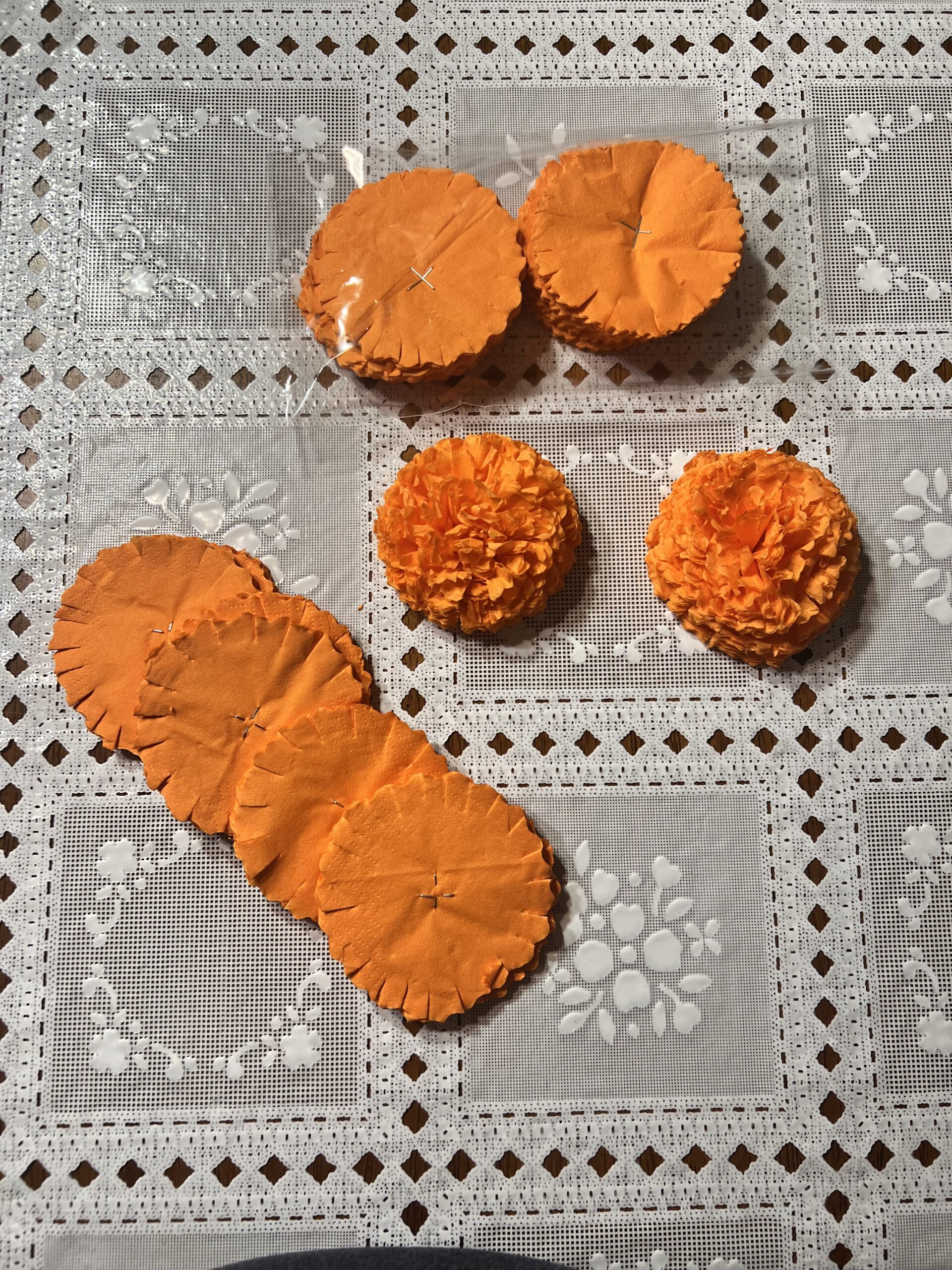 10 FLORES DE CEMPASUCHIL DE PAPEL CON UN DIAMETRO DE 7.5 COLOR NARANJA