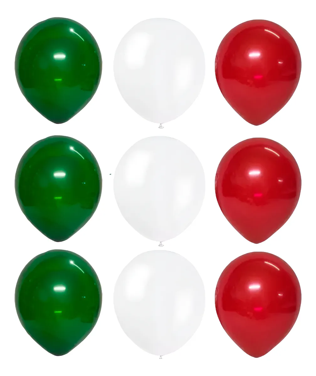12 globos latex No. 9  4 verdes 4 blancos 4 rojos